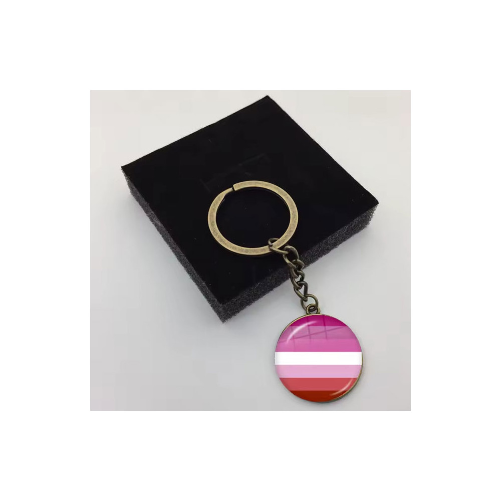 Porteclés pastille aux couleurs du drapeau lesbien.